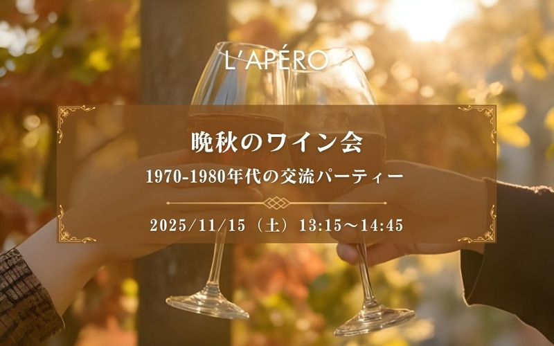 晩秋のワイン会|1960-70年代生まれ|独身限定|同年代の楽しい出会いと交流|全員と会話スタイル|お一人参加大歓迎のアペロパーティー