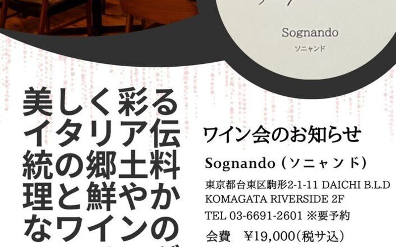 美しく彩るイタリア伝統の郷土料理と鮮やかなフランスワインのペアリングを愉しむワイン会