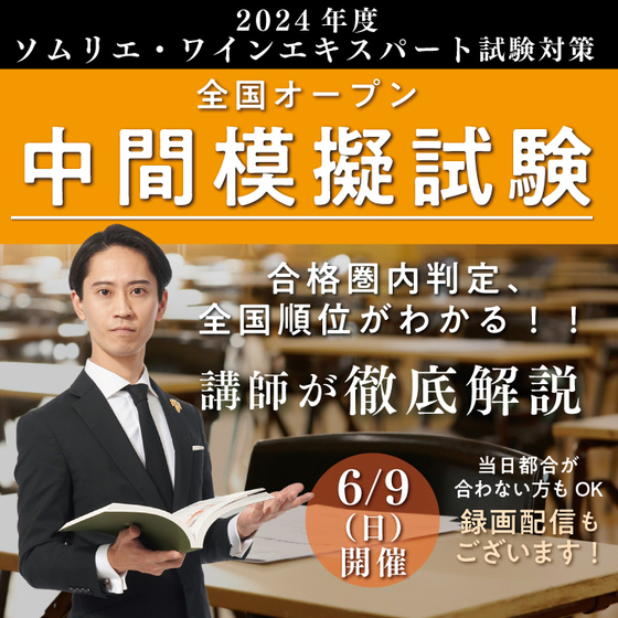 【2024/6/9(日)】2024年度ソムリエ・ワインエキスパート試験対策 全国オープン中間模擬試験