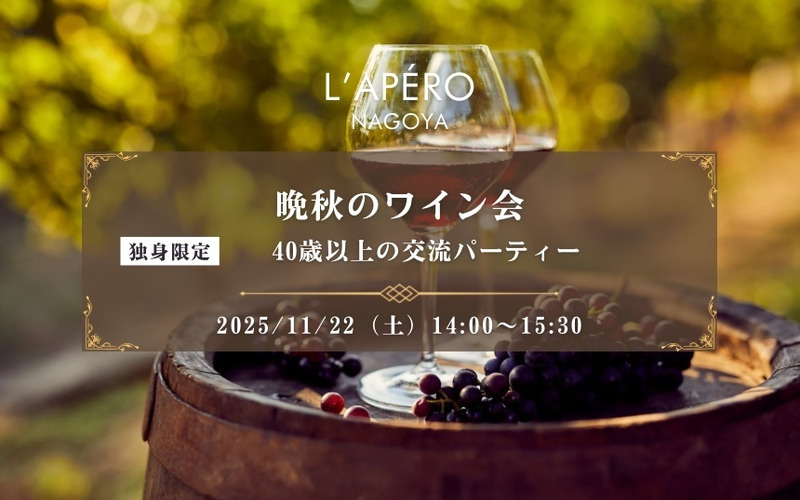 【名古屋】晩秋のワイン会|40歳以上|独身限定|同年代の楽しい出会いと交流|全員と会話スタイル|お一人参加大歓迎のアペロパーティー
