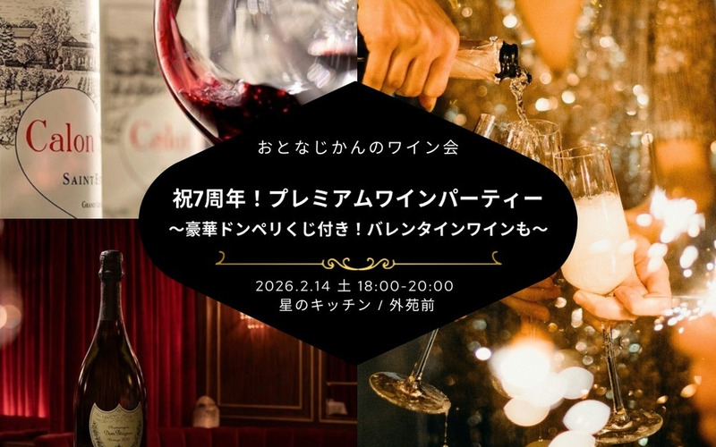 2月14日 (土) 祝7周年!!おとなじかんのプレミアム・ワインパーティー 〜豪華ドンペリくじ付き〜
