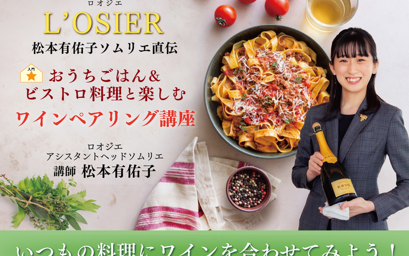 全2回|L’OSIER 松本有佑子ソムリエ直伝「おうちごはん&ビストロ料理と楽しむワインペアリング講座」