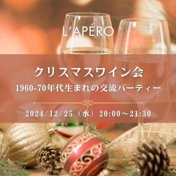 クリスマスワイン会|1960-1970年代生まれ|同年代の楽しい出会いと交流|全員と会話スタイル|お一人参加大歓迎のアペロパーティー