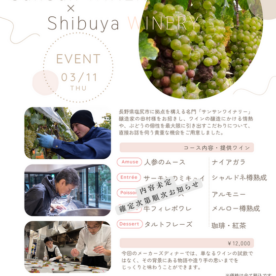 サンサンワイナリーメーカーズディナー・ペアリング講習付き