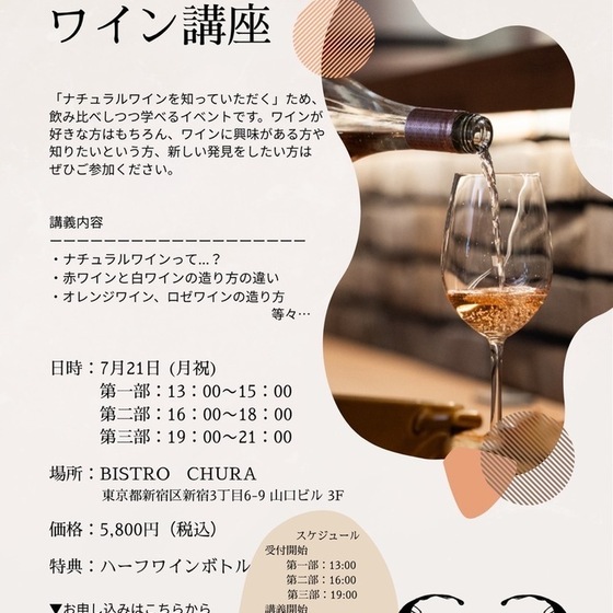 by場所:BISTRO CHURA (ビストロ ちゅら) 東京都新宿区新宿3丁目6-9 山口ビル 3F https://maps.app.goo.gl/JGkXTKznxK817GYcA?g_st=ic2025年7月21日(月)~2025年7月21日(月)