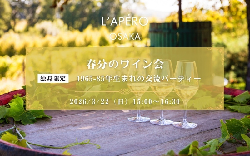 春分のワイン会|1960〜70年代|独身限定|同年代の楽しい出会いと交流|全員と会話スタイル|お一人参加大歓迎のアペロパーティー
