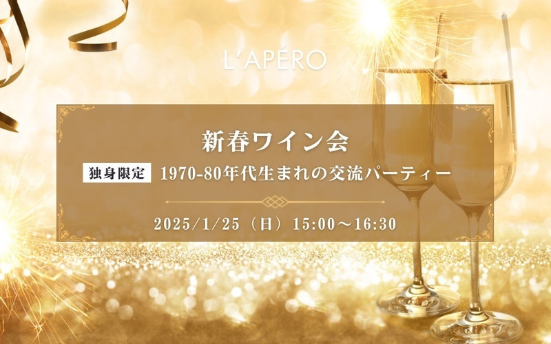 【大阪】新春ワイン会|1970〜80年代|独身限定|同年代の楽しい出会いと交流|全員と会話スタイル|お一人参加大歓迎のアペロパーティー