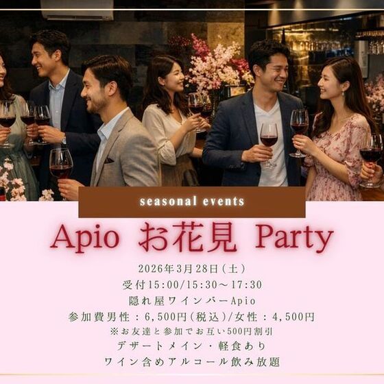 by場所: 隠れ屋ワインバーApio 東京都新宿区百人町2丁目23−5 ジャンボリッチカーサ 2F 大久保駅 徒歩1分 新大久保駅 徒歩5分 西武新宿駅 徒歩12分2026年3月28日(土)~2026年3月28日(土)
