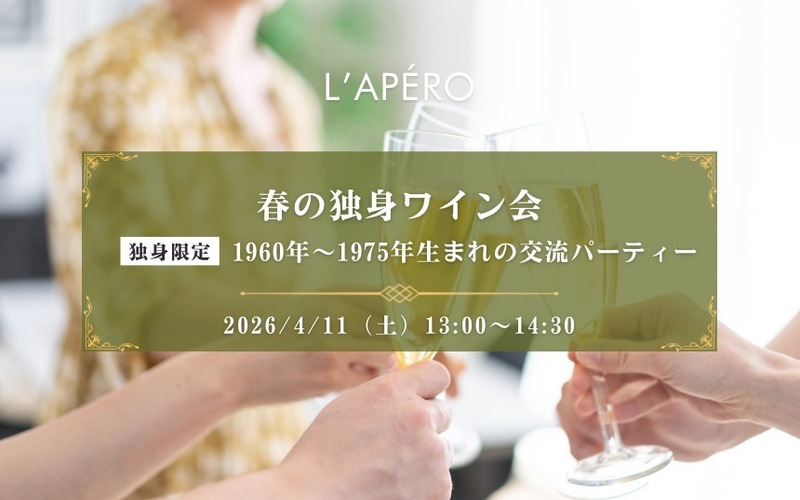 春のワイン会|1960年〜75年生まれ|独身限定|表参道|同年代の楽しい出会いと交流|全員と会話スタイル|お一人参加大歓迎のアペロパーティー