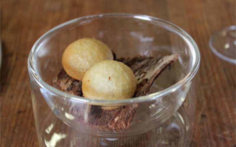 さっき用意した、セップの結晶化したものと、パン、バターのセットが運ばれてきます。