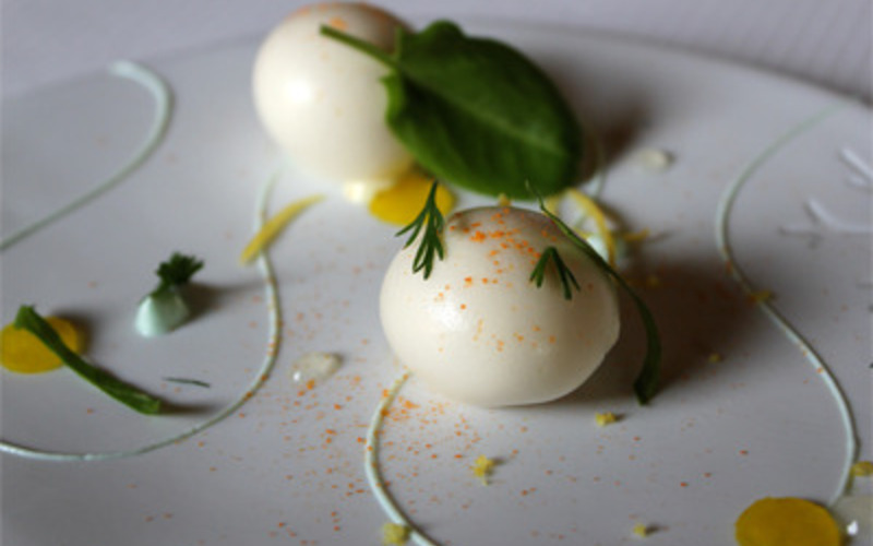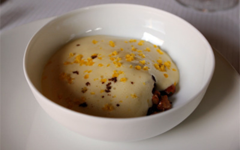 ・Meringue, glace au lait d'alpage, marmelade d'orange