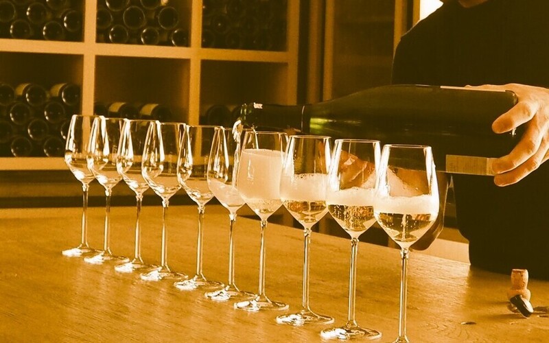 スパークリングワインのグラスにスパークリングワインを注ぐ際は、半分より多くて大丈夫です。