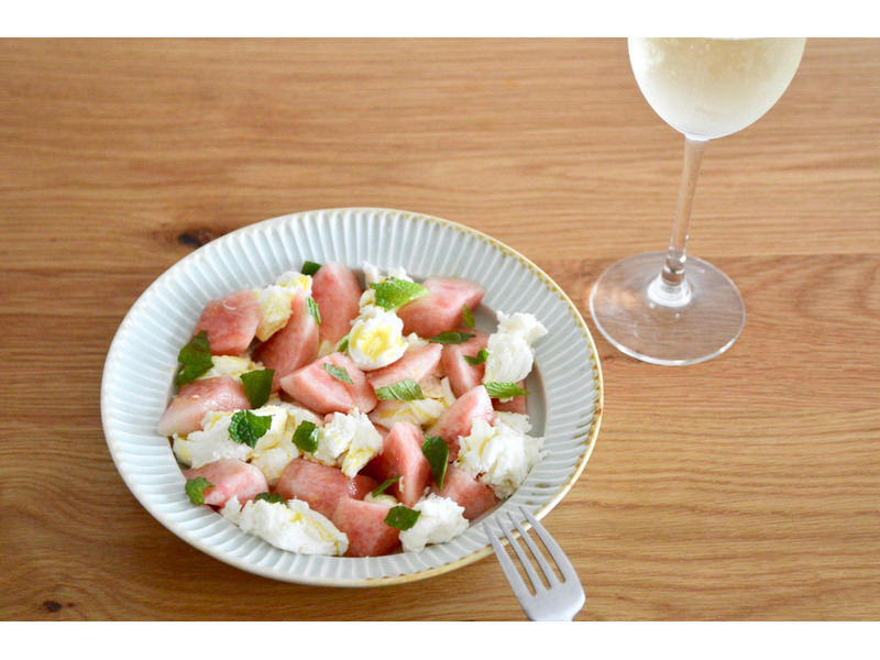 ワインの白桃のような果実味が、桃の味わいと抜群に合います。爽快な酸味とビネガーの酸味、ミントの清々しさも心地よくマリアージュ。