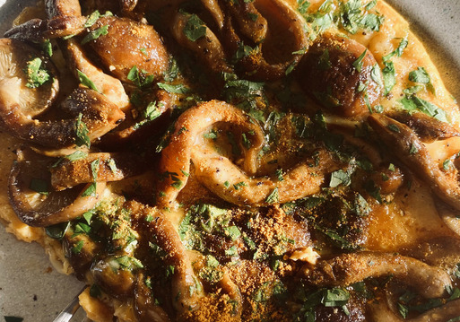 里芋は熱いうちに皮をむき、フォークなどでつぶし、薄口醬油、アンチョビ、ドライトマト、レンコンを混ぜる。(ここで味を見る。塩が足りなければ塩を加える。)