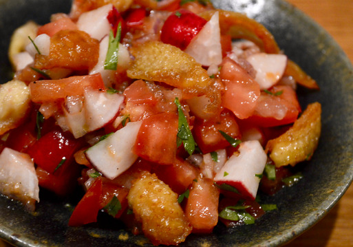 トマトを炒めるときに、あまり触らずこんがり焼き目をつけるようなイメージで火を通すと、ソースが水っぽくならずトマトの甘味や旨味が凝縮して美味しくなります。