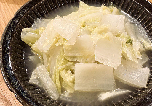 バターのようなコクのあるワインで、バターの旨味や火を通して引き出された白菜の甘味とマッチ。ワインの酸味と梅の酸味も好相性。
